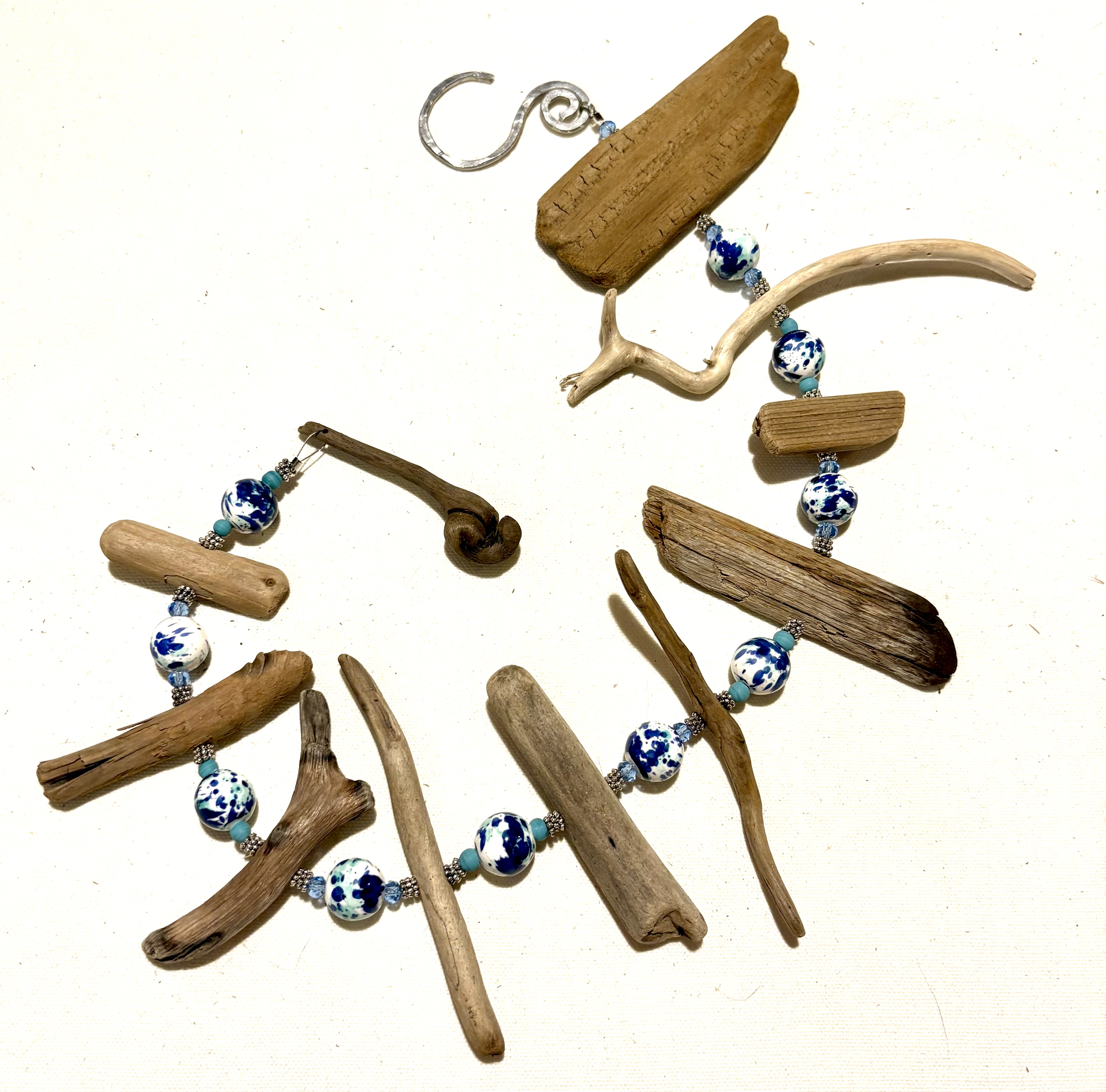 Lake Michigan driftwood with glass beads.