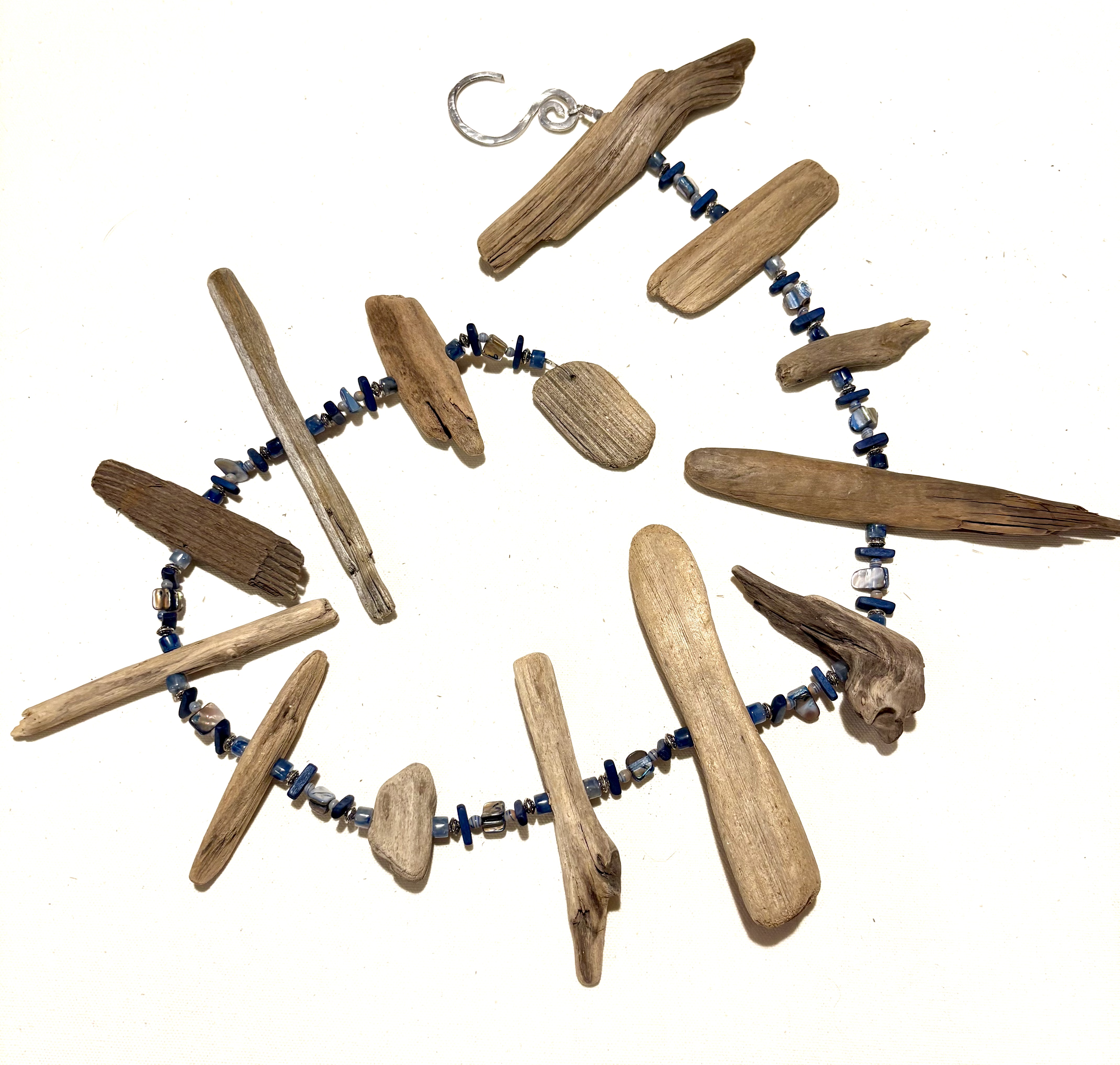 Lake Michigan driftwood and glass beads.