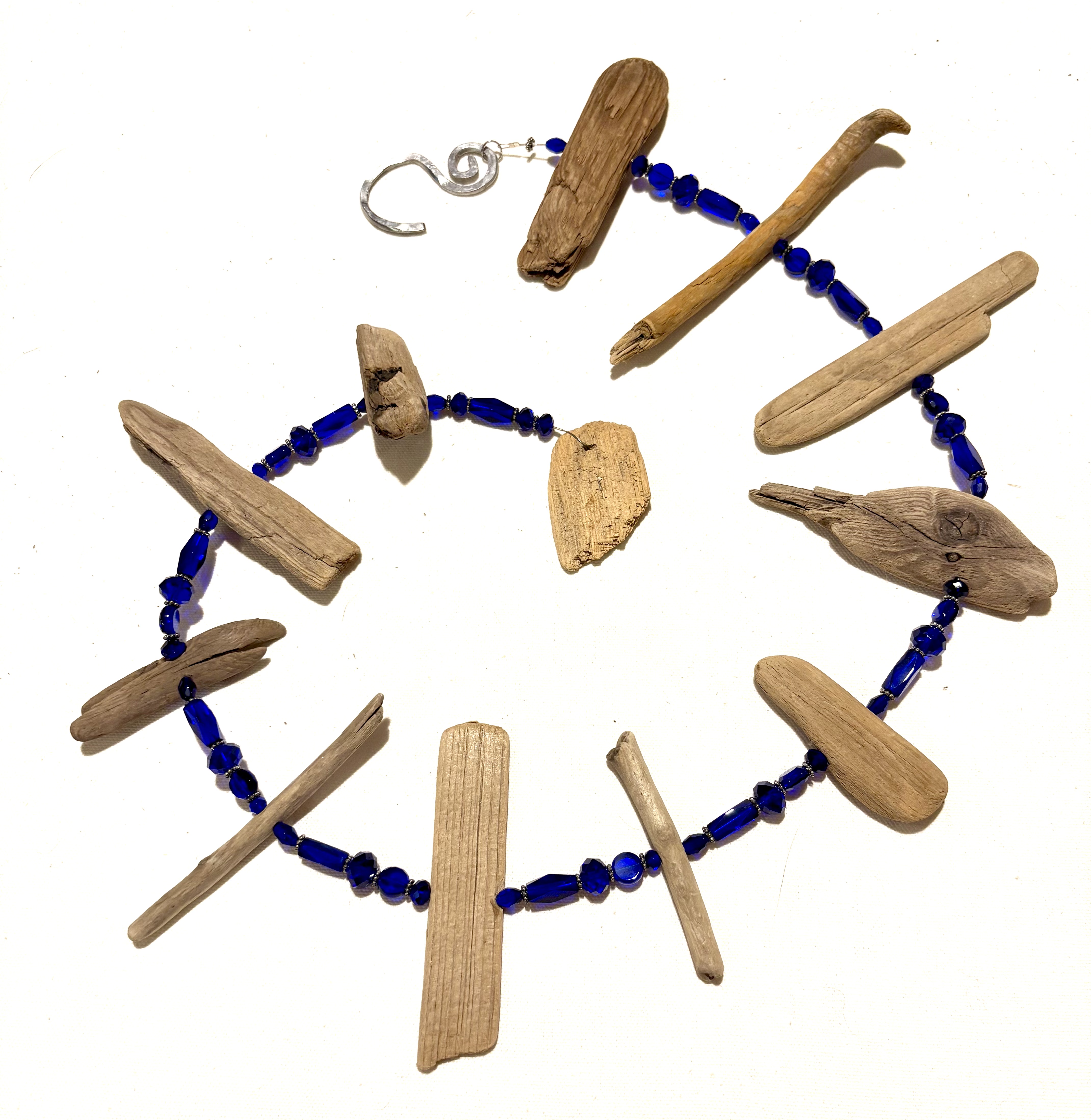 Lake Michigan driftwood and glass beads.